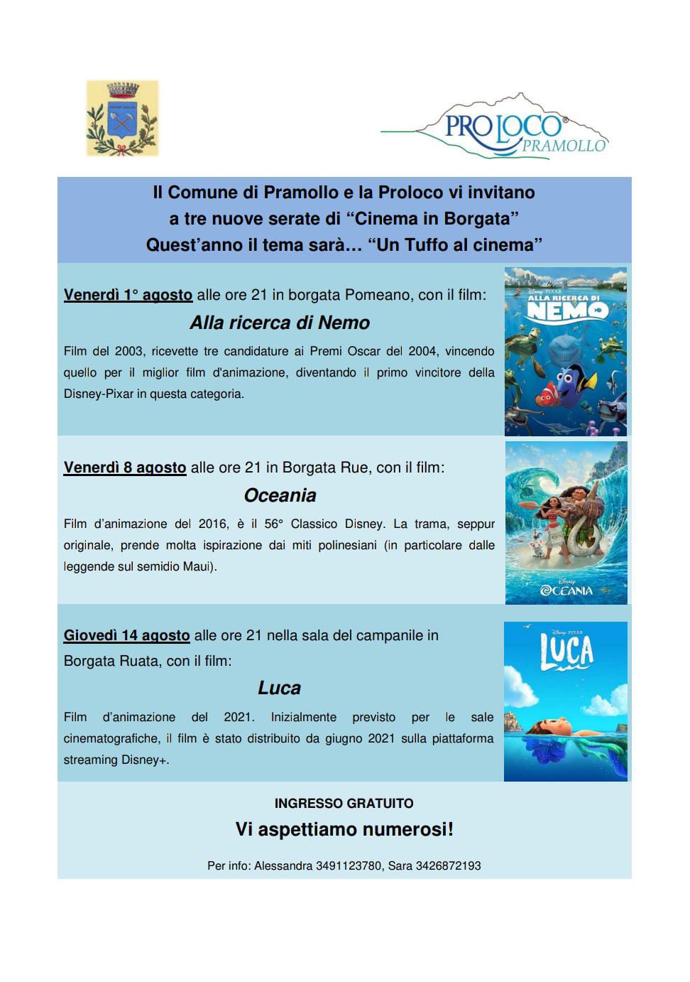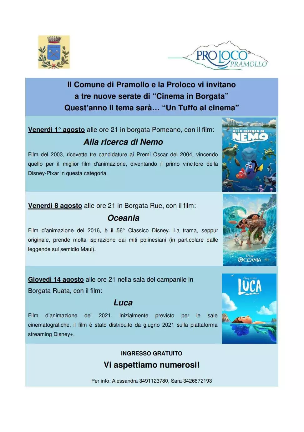 Il Comune di Pramollo, insieme alla Proloco di Pramollo, organizzano nel mese di Agosto una serie di proiezioni a tema "Un tuffo al Cinema".