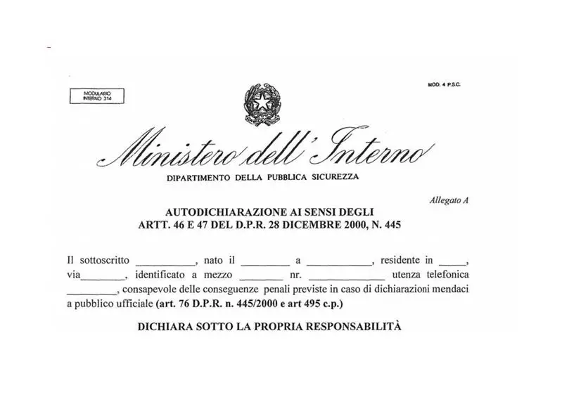 IL MODULO DI AUCERTIFICAZIONE CONCERNENTE LO