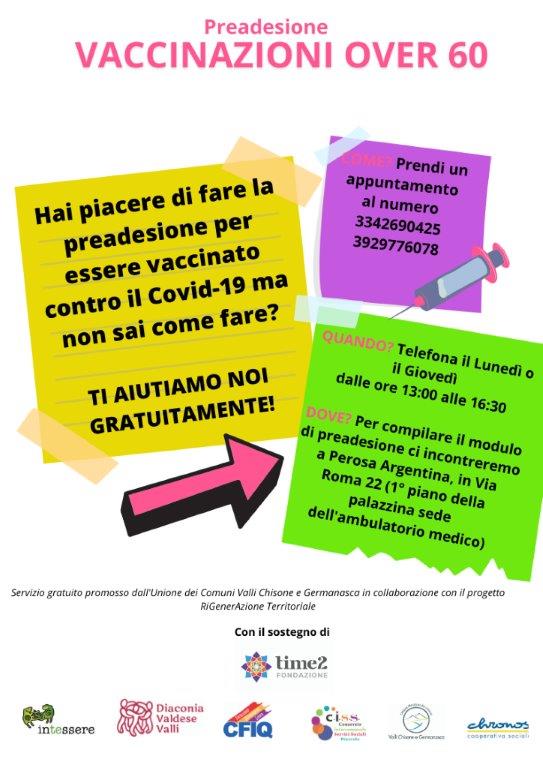 Si porta a conoscenza della possibilità di fare la preadesione per la Vaccinazione Covid-19 presso le strutture di Perosa Argentina dell'Unione Montana Valli Chisone e Germanasca.