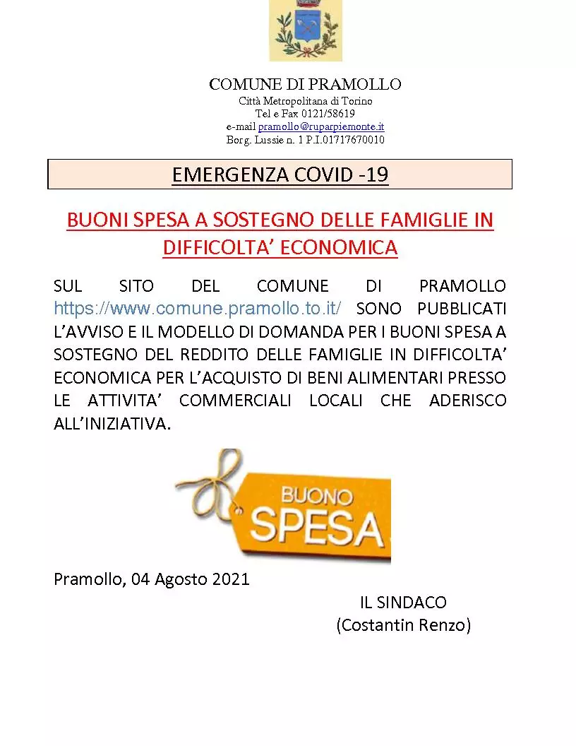 Comune di Pramollo in condizione di contingente indigenza economica derivata