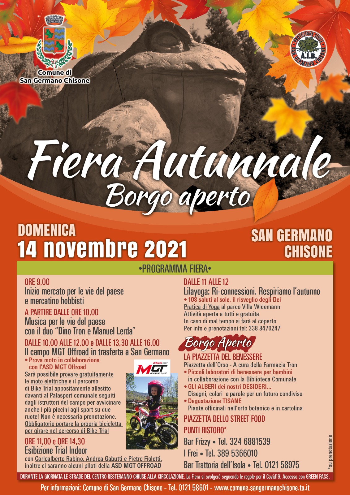 Si rende noto che, come da comunicazione pervenuta, Domenica 14 novembre avrà luogo la Fiera Autunnale in San Germano Chisone.