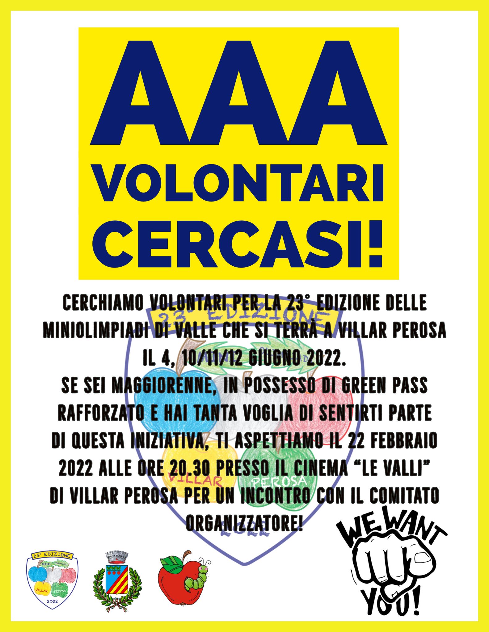 Si rende noto che per l'organizzazione delle Miniolimpiadi di Valle si ricercano volontari volenterosi di partecipare alla manifestazione.