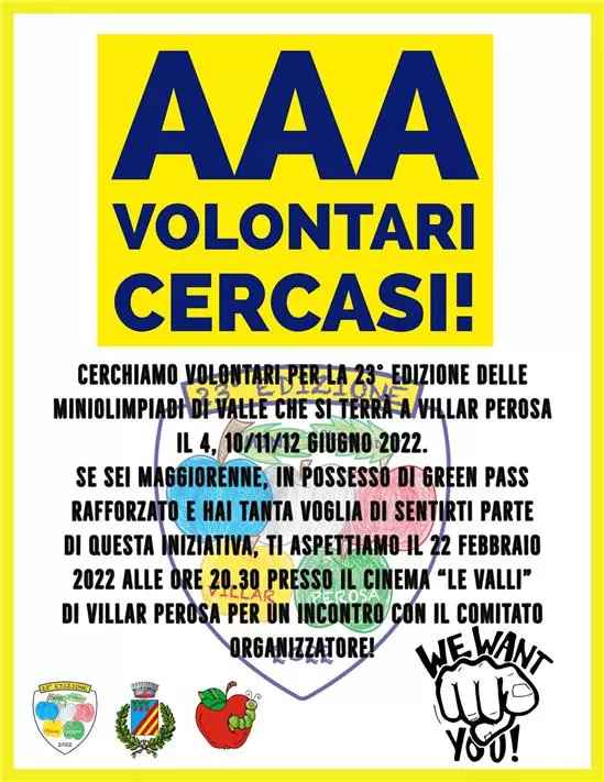 Per chi fosse disponibile, ci sarà un incontro il 22.02.2022 presso il cinema "Una Finestra sulle Valli" con il comitato organizzatore.