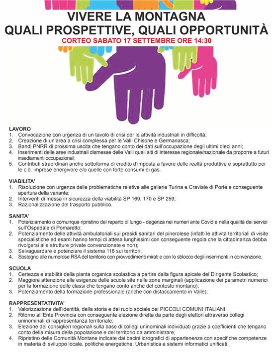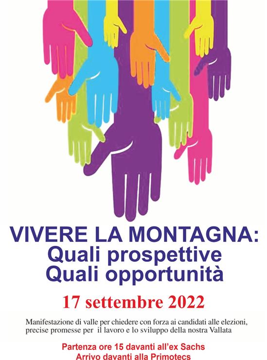 Descrizione Si rende noto che per il giorno Sabato 17 settembre 2022 è in programma la manifestazione: "Vivere la Montagna - Quali prospettive. Quali opportunità"
