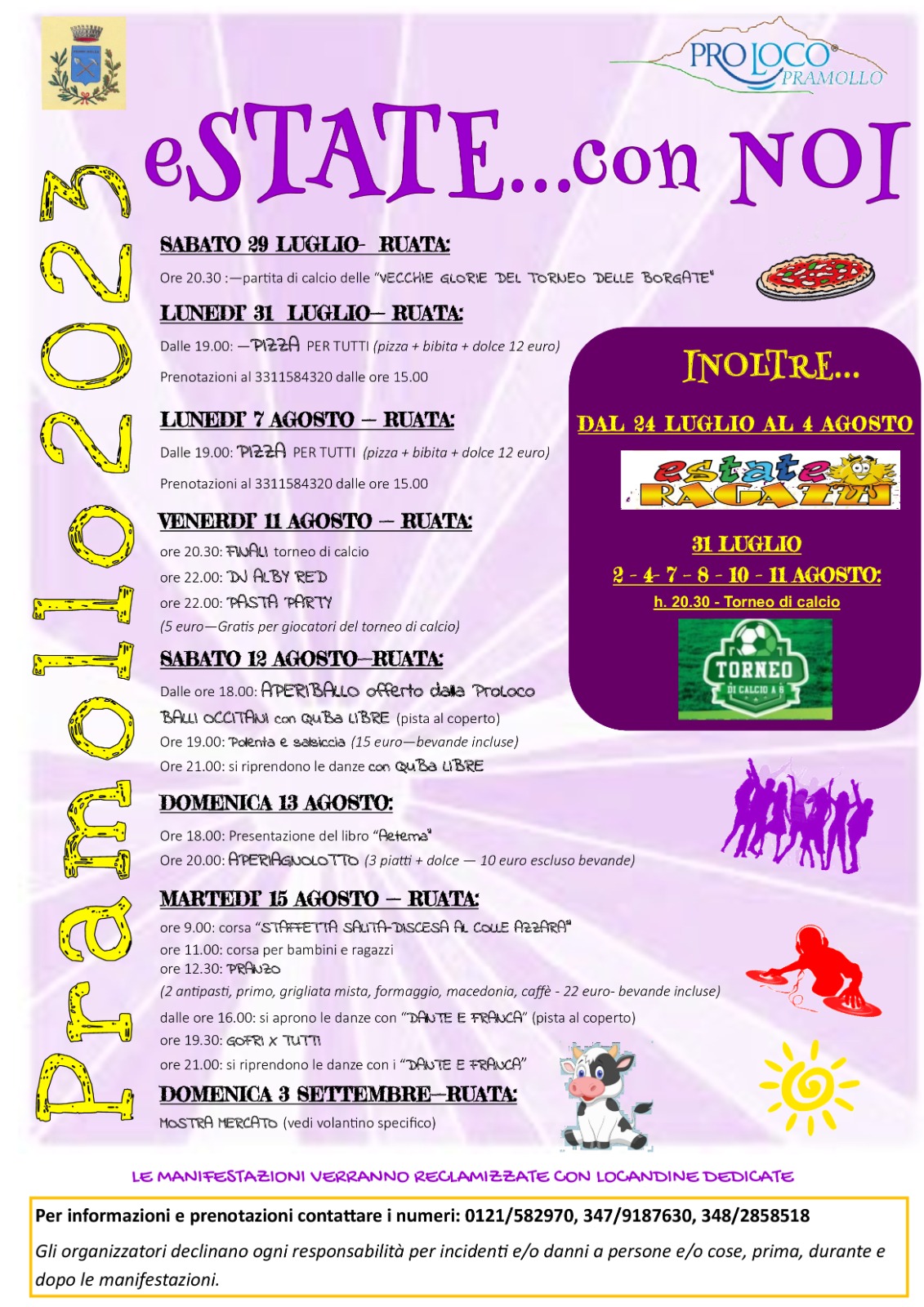 É stato pubblicato il calendario eventi estivi organizzati dalla Pro Loco di Pramollo. Gli eventi saranno i seguenti: